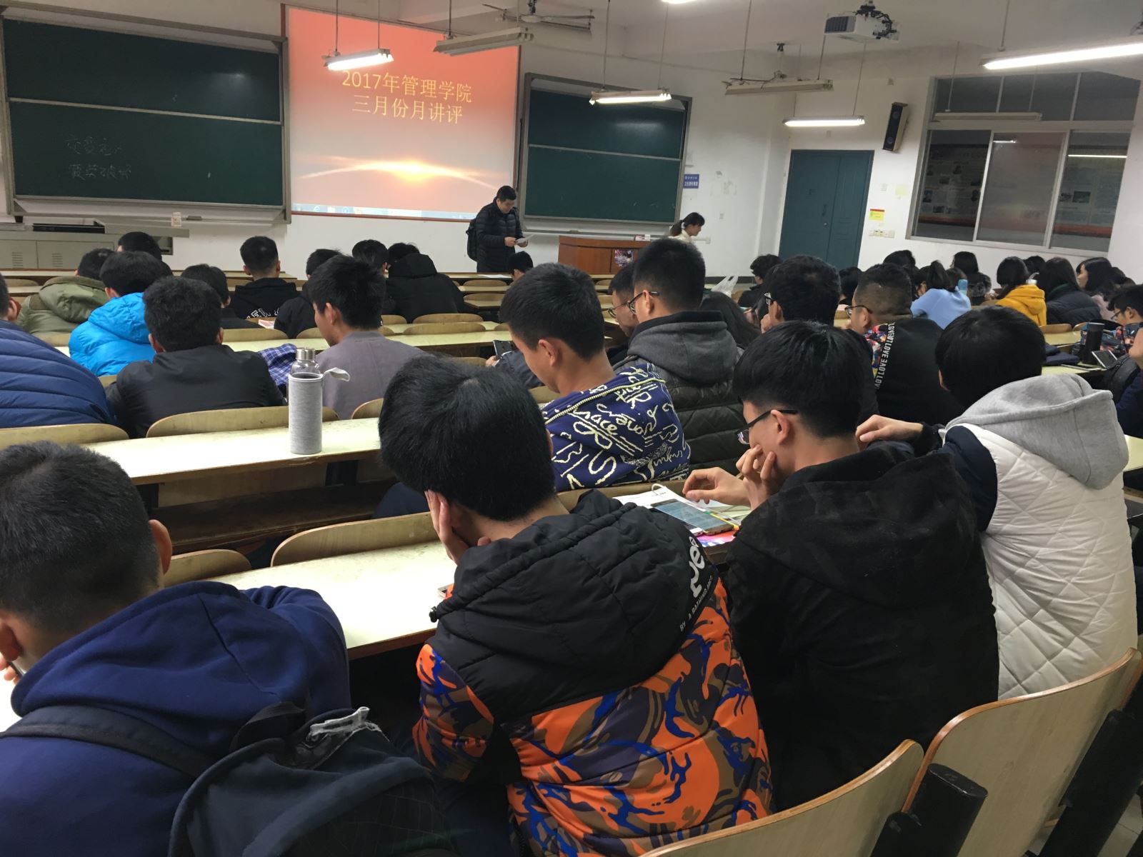 2017年3月13日中午12:20,taptap点点工商管理、会计学单学号、物流管理、资源人力、旅游管理全体人员,在主校区教室内进行本学年第一次月评会议。学办辅导老师罗荃、黎博、包海燕、周艺、宋志航对工商管理、旅游管理、人力资源管理、会计学、物流管理六个,专业展开本月讲评。本次会议还有一道靓丽风景,由单艳艳老师召开心理专项会议。心理会议由大一全体心理委员、心理朋辈辅导员、寝室长,以及心理部部干事到会。