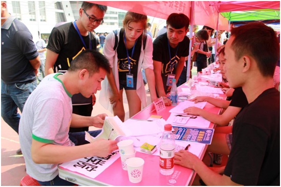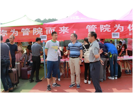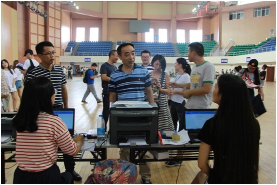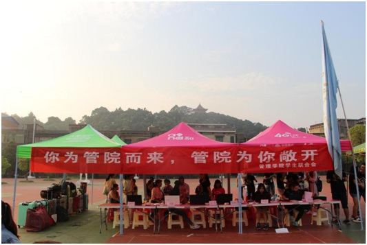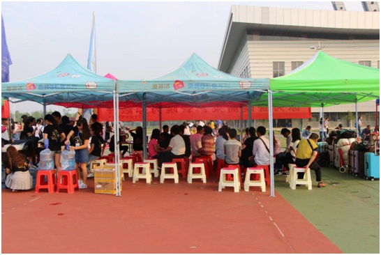 校园被妆点得分外美丽,喜庆和谐。彩虹门上书写着“热烈欢迎2016级新同学”,校园体育馆主干道上高挂着红色迎新横幅,缤纷的院旗和整齐的帐篷,使迎新现场变得既有声有色又井然有序。截止9月9日下午5点,taptap点点已报到新生433人,报到率96.22%。