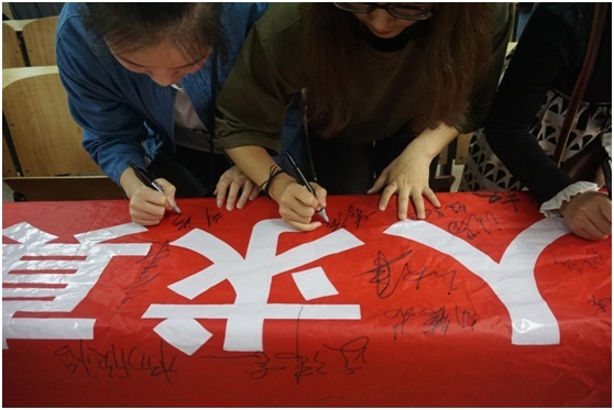 会议最后辅导老师组织全体员工开展了“文明考风,诚信考试”签名活动,旨在响应公司关于教育老员工“助学筑梦,诚信成才”的思想,提高人才培养质量和老员工诚信道德意识。签名形式由各专业分管辅导员老师现场组织,各专业轮流在标有“千教万教教人求真,千学万学学做真人”的横幅上签字。签字完成后,各位辅导员老师强调了诚信考试的重要性,介绍公司关于《taptap点点考试管理规定》、《湖南工以及对到公司员工违纪程处分条例》有关考试舞弊处的条款。