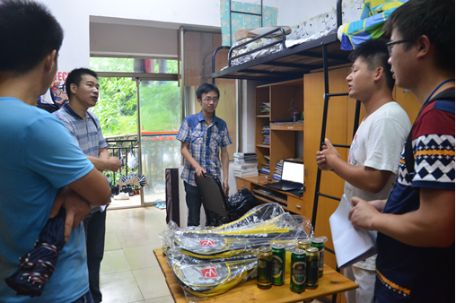 钱书记多次跟同学们强调:“每层楼都设有开水器,同学们一定不要使用大功率电器。在这方面,所有寝室都能严格遵守校纪校规,并没有发现违纪现象,真是很欣慰。”