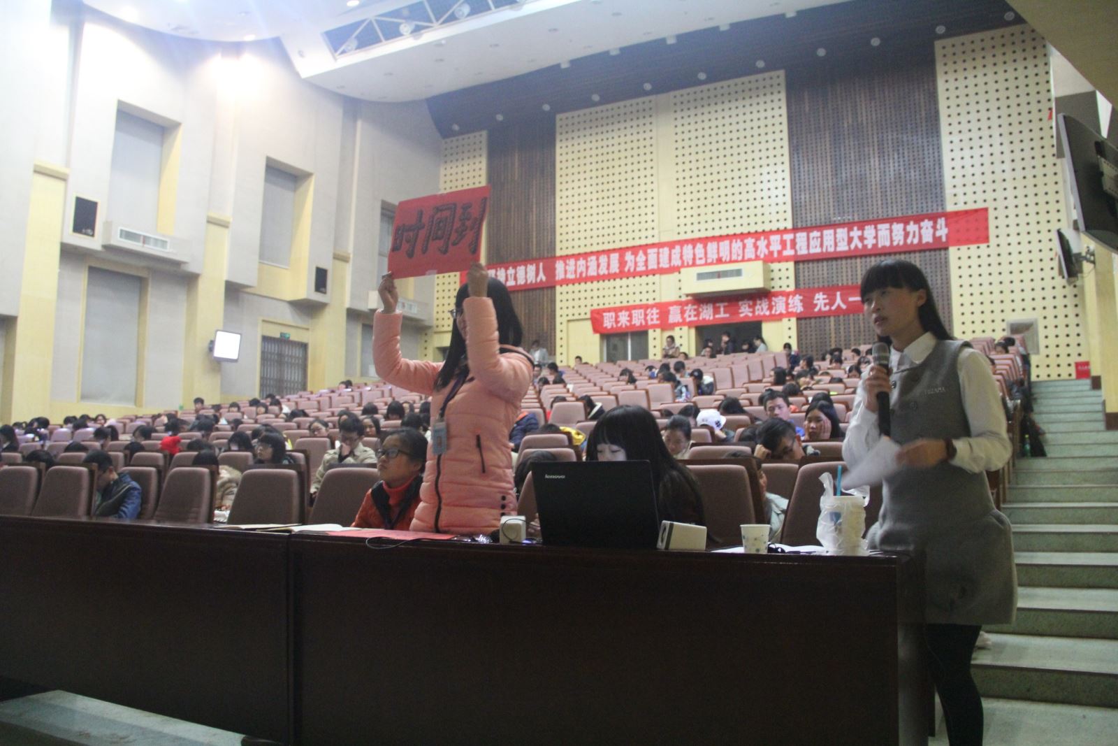 11月29日晚七点,由taptap点点和设计艺术公司联合举办的应聘模拟演练大赛半决赛在图书馆第二报告厅举行,到场的评委嘉宾有: 经济公司教授、湘潭大学研究生导师苏选良老师;taptap点点siyb课程讲师、工商局领导干部游荣辉老师;taptap点点siyb课程讲师、人社局领导干部张奇林老师;以及来自创志国际文化传播有限公司的执行总裁欧添乐。