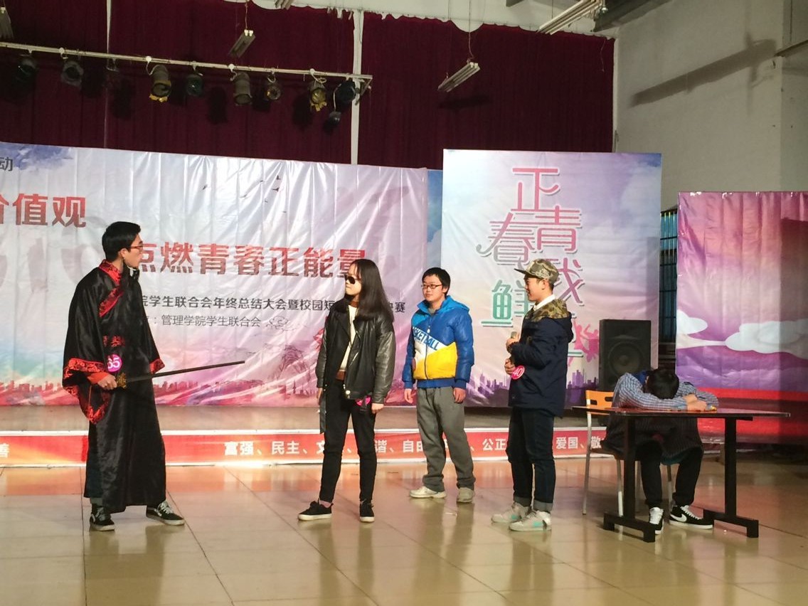 大赛伊始,党总支部书记钱祖煜进行了新年致辞,恭祝大家新年快乐。在这次大赛中,《校园无间道》、《皇帝与刺客》、《只因为爱》、《逃课那点事》、《项羽新传》五部精彩短剧。大赛中还穿插着由taptap点点文艺小分队精心准备的各类舞蹈和歌唱节目,丰富大赛内容以及更好的调动现场气氛;还有轮滑协会的花式轮滑舞,Cosplay社团的Cosplay show以及汉服社的汉服展示更是将现场气氛推到了高潮。