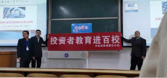 11月26日下午4:50,公司于D301开展“互联网行业创业面临的机遇与挑战”主题讲座。此次讲座由兴业证券湘潭分公司投研部经理张新强主讲,经济公司学办主任戴晶晶主持,公司19级员工参与此次讲座。