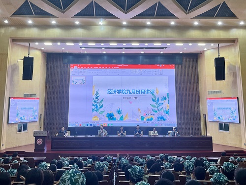 2024年9月24日晚上19:00,经济公司在图书馆一报告厅召开九月份月讲评,党委书记黎娅、副经理曾贵、党委副书记卢时光、学办主任戴晶晶、员工辅导员李军花及团总支书记刘佳馨出席活动,经济公司2024级全体新生及新生朋辈辅导员参加活动。