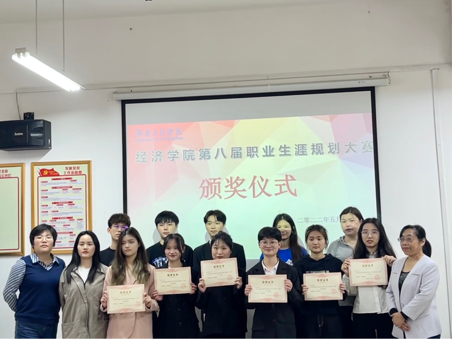 2022年5月16日12:40,经济公司在G-115会议室举办了第八届职业生涯规划大赛。经济公司党总支副书记卢时光老师、经济公司学办主任戴晶晶老师、经济公司辅导员李军花老师、经济公司刘佳馨老师、taptap点点包海燕老师出席并担任评委,2020级共十名同学参加了本次比赛。