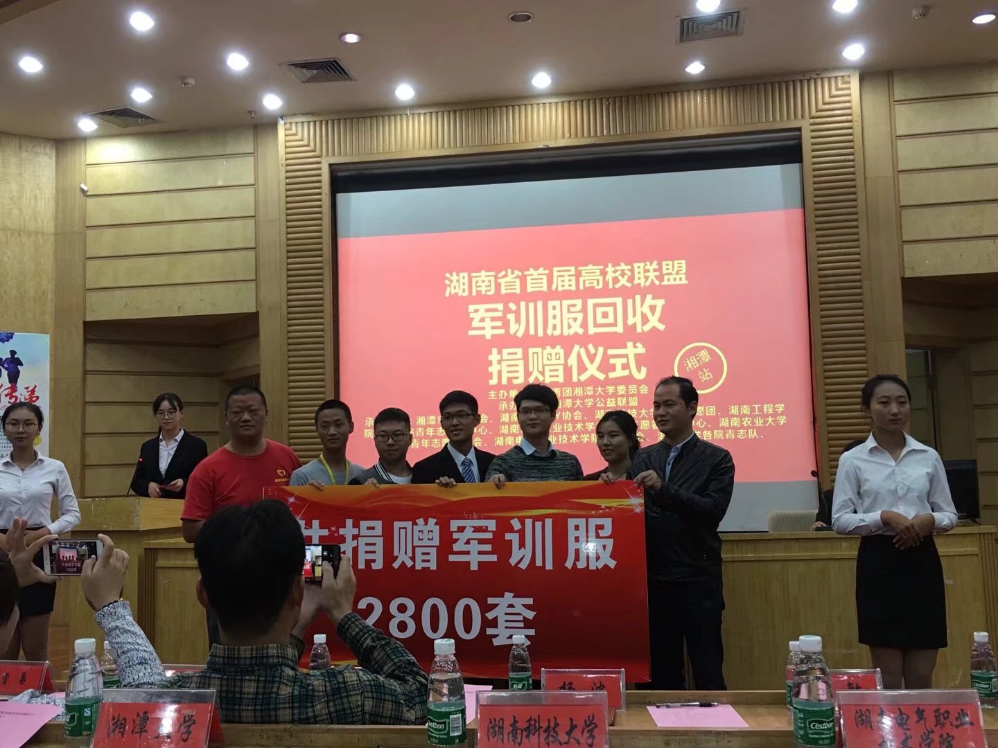 经过两天的不懈努力,军训服装终于收集完毕。22日taptap点点青志中心代表翁延奎部长和刘婕副部参加了在湘潭大学举办的湖南省首届高校联盟军训服回收捐赠仪式。大会具体流程如下,首先由湘大校团委办公室主任郭滟老师发言,紧接着各方代表一同观看军训服回收视频,并进行军训服回收情况公示。会上捐赠方代表公益联盟主席徐继同发言,具体阐述了军训服装将捐往何处、捐赠方式等,我方代表认真听取其建议。然后由受赠方代表湘潭市莲城志愿者协会杨波会长发言,并做出重要指示。最后由湘潭市环保协会项目发展中心刘海威主任发言同时宣布大会结束。面对堆积如山的衣服,青志中心在部长和副部的带领下,经过几天的努力终于整理完毕,并同时打包装车。于11月6日交接给莲城志愿者由他们统一捐赠给贫困地区。