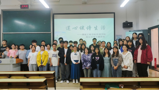活动中,莲心老师对莲心名字由来进行了介绍,对《我为月亮代言》、《秋风的承诺》、《岁月》等原创诗词进行朗读和赏析,激发了同学们进行诗词创作的兴趣。随后,她介绍了如何用诗词来调节现代人的生活,向同学们展示了学习诗词的好处,介绍了诗词对人生的意义。最后,莲心老师教授同学们如何进行诗词阅读与创作,呼吁同学们要善于读诗,敢于作诗。至此,本次讲座正式结束。